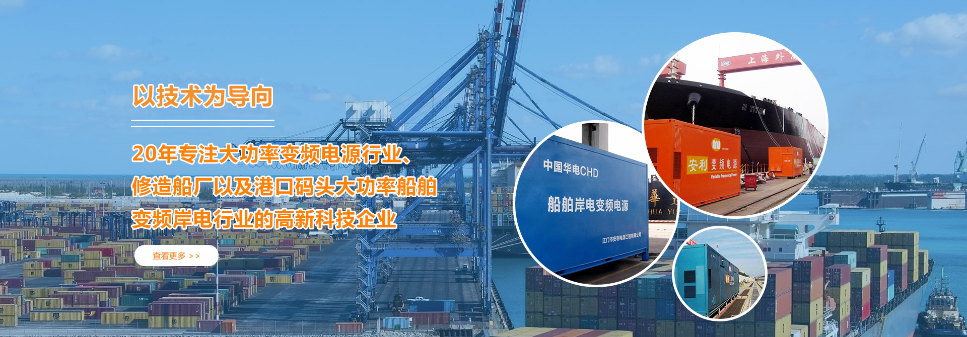 我司是專業從事大功率變頻電源設備的研發設計、生產制造、銷售、安裝調試一條龍服務的電源設備工程公司。是一間以技術為導向,專注大功率變頻電源行業、修造船廠以及港口碼頭大功率船舶變頻岸電行業的國家級高新技術企業。公司本著“專業、專心、專注、專一”的精神,提供技術先進、性能可靠的大功率變頻電源設備系列產品及提供完整的大功率變頻電源解決方案及工程安裝服務。